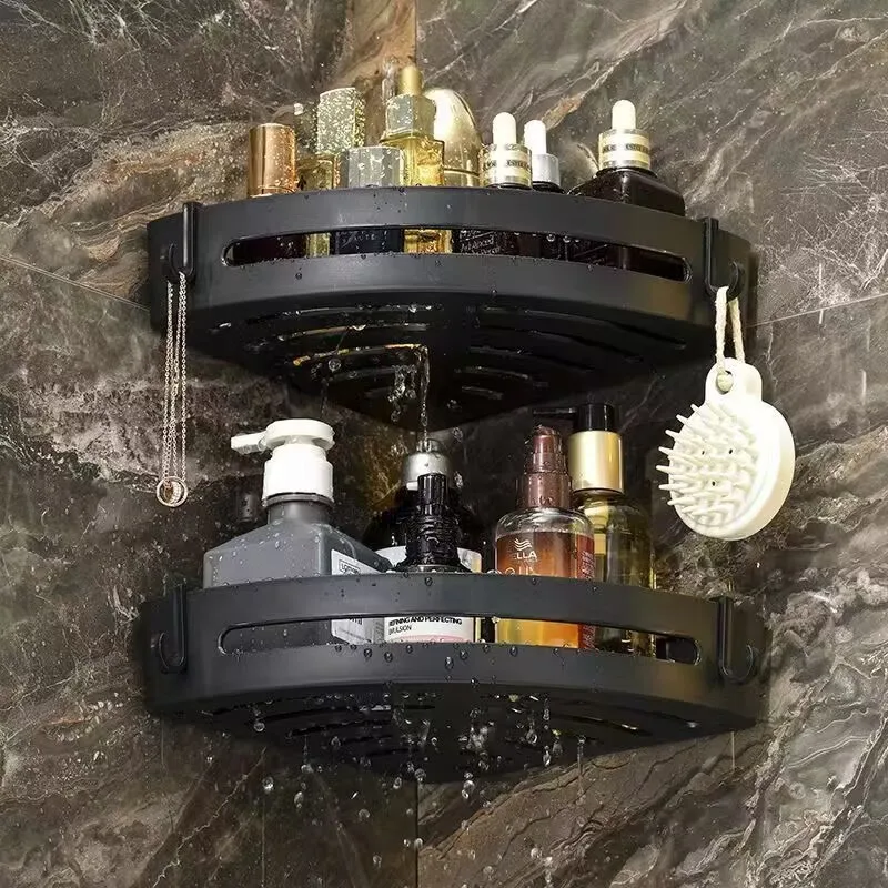 Bathroom Organizer Shelf No Drill Rustproof Waterproof Black